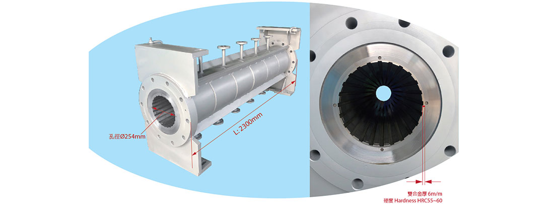 The bimetallic screw and barrel are made of two metals or two metal alloys, which can improve the wear resistance and corrosion resistance of the screw and barrel.